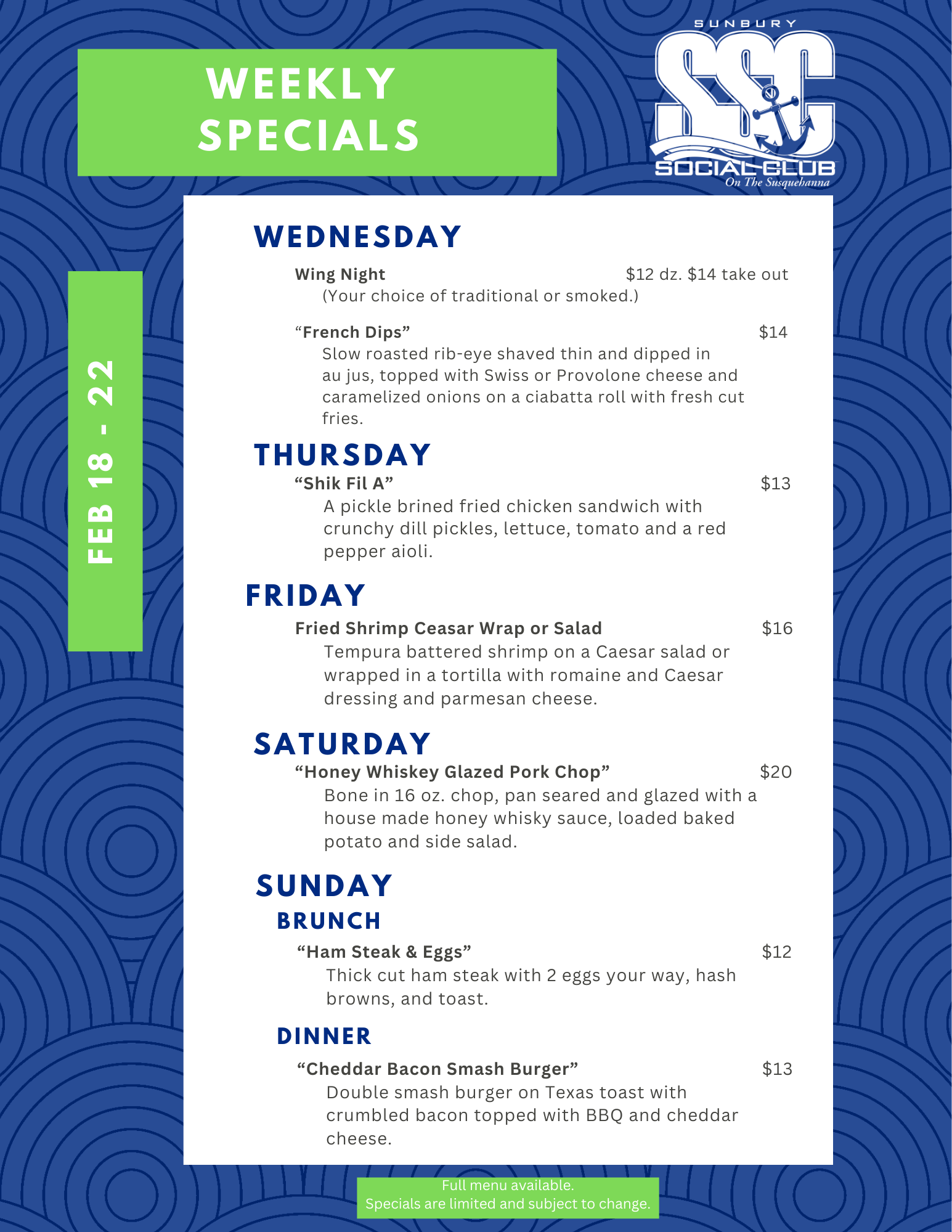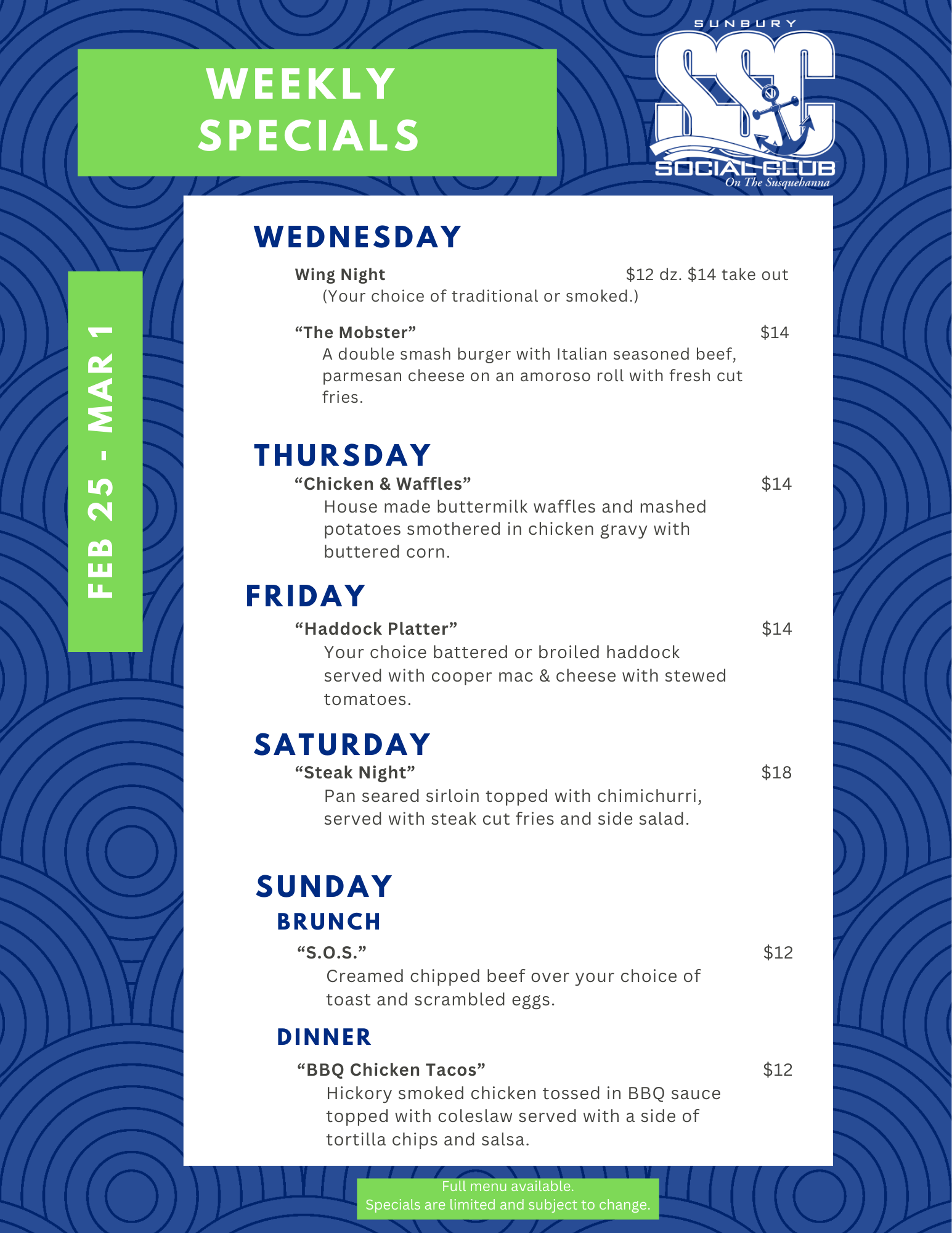 The place to be for great food and entertainment on the Susquehanna River, between Sunbury and Northumberland, Pennsylvania.